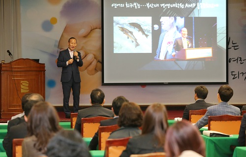 최병오 패션그룹형지 회장이 지난 4월 12일 부산일보가 주최하는 부일 CEO아카데미에서 '위기를 기회로 만드는 기업가정신'을 주제로 강연을 진행했다.
