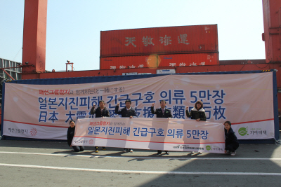 3월 27일 부산항을 출발한 의류 컨테이너는 29일 일본기아대책에 전달되었다.